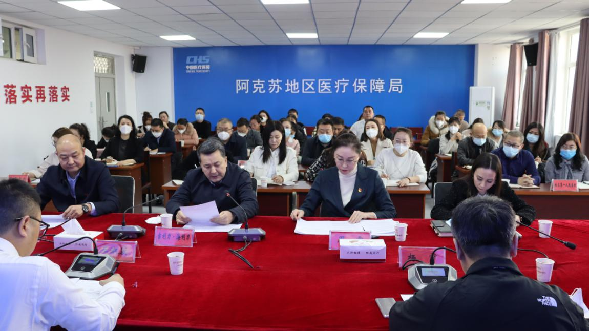 自治区医保局飞检组工作人员、阿克苏地区及相关县(市)医保局负责同志、阿克苏地区本级定点医药机构代表50余人参加了会议。
