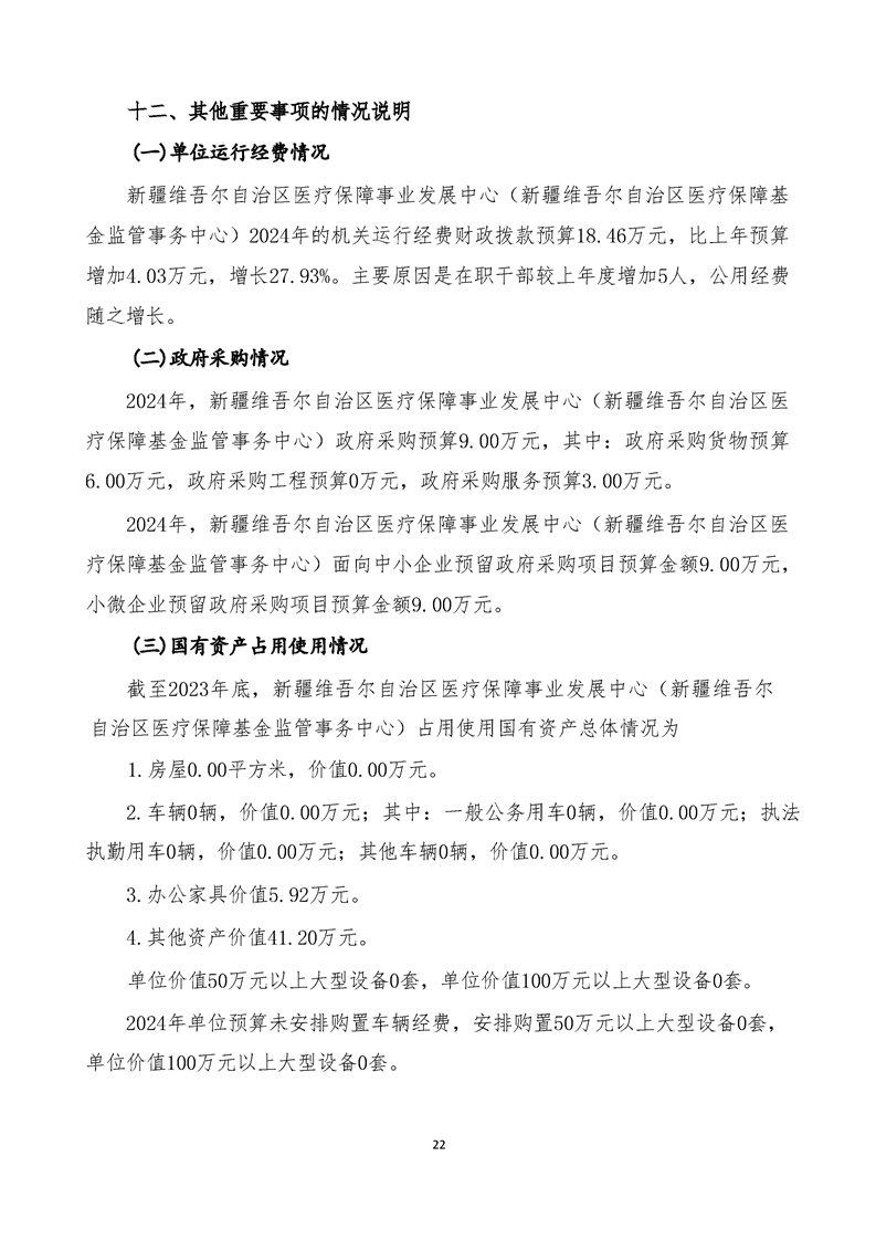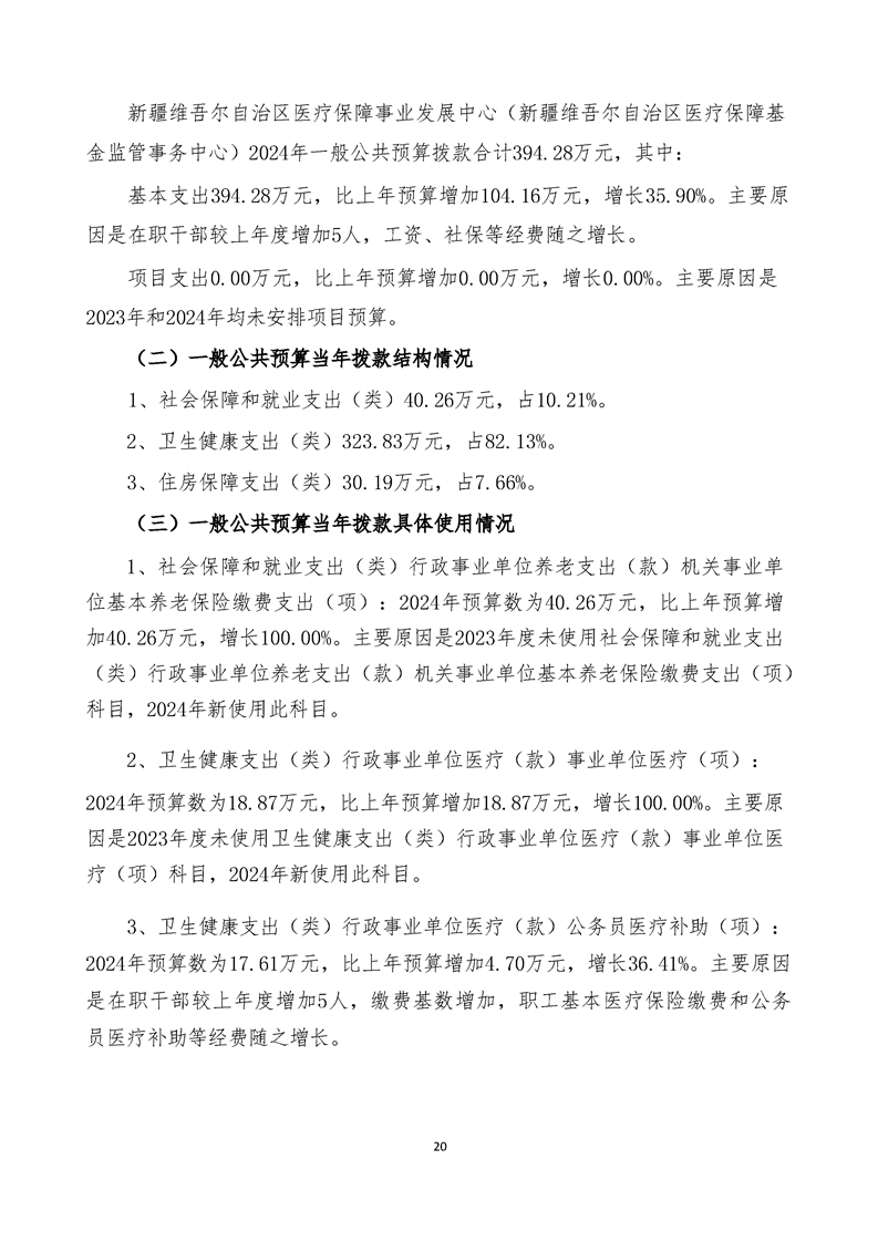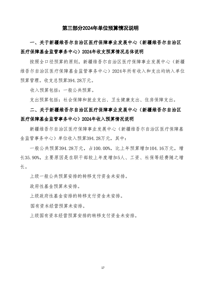 新疆维吾尔自治区医疗保障事业发展中心(新疆维吾尔自治区医疗保障基金监管事务中心)2024 年单位预算公开