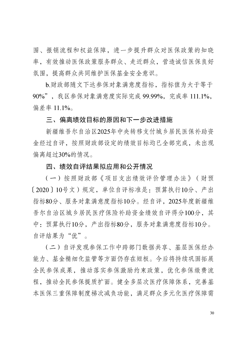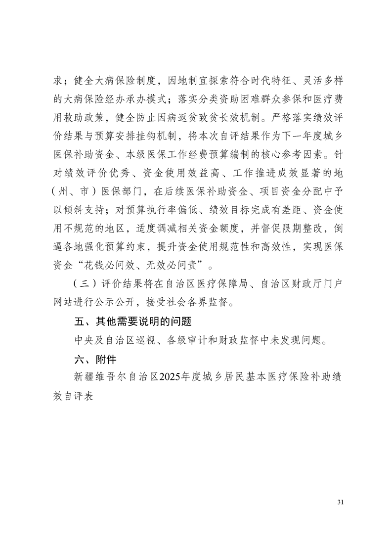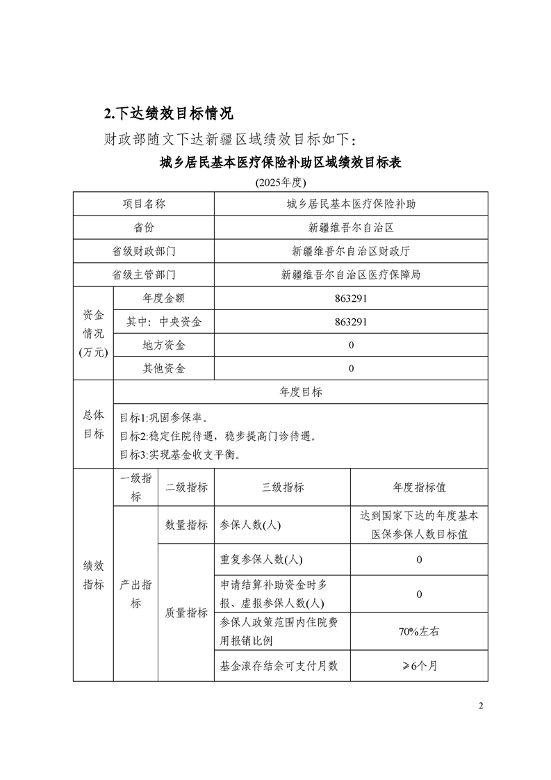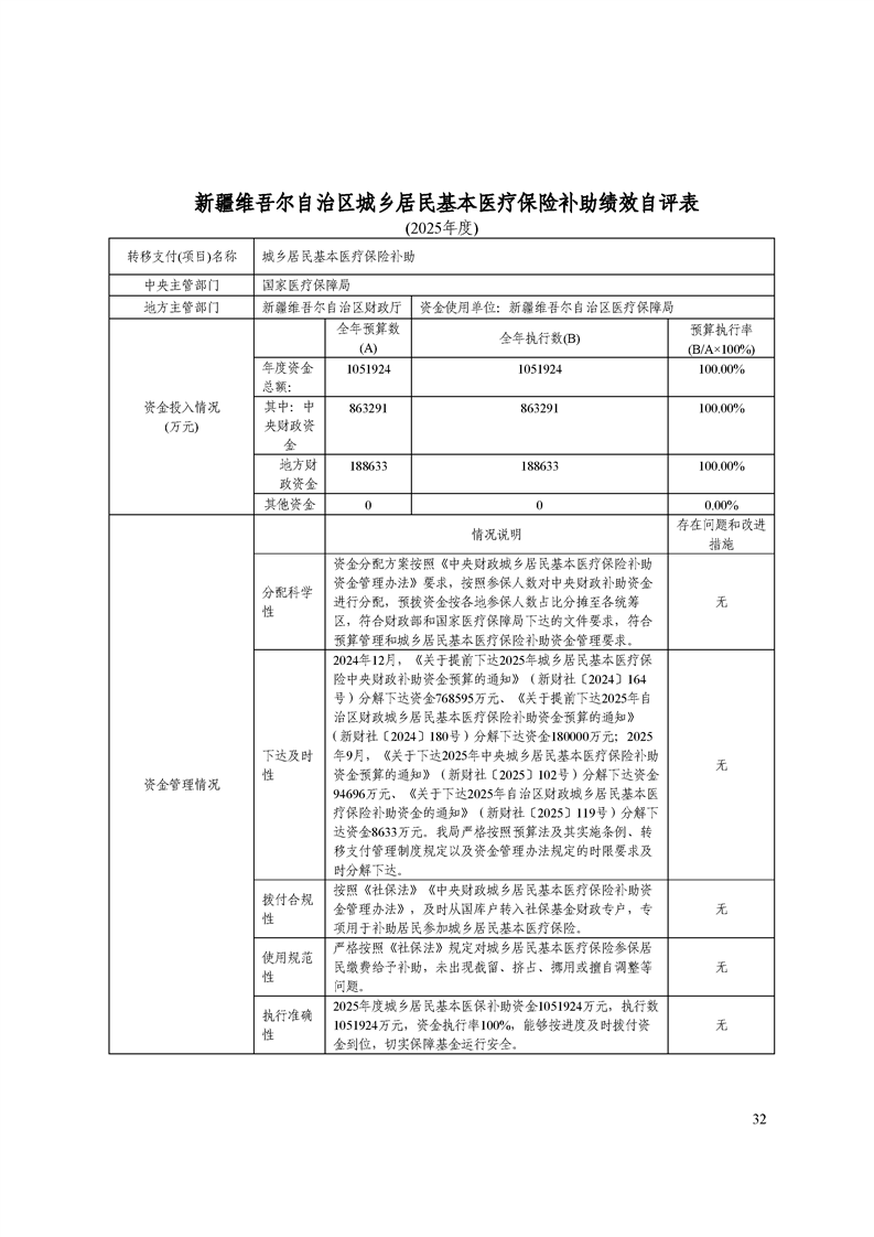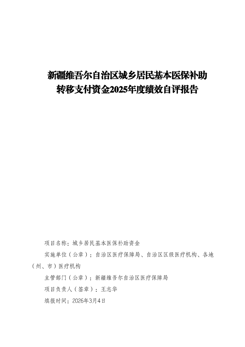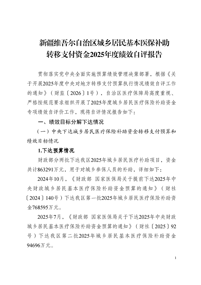 新疆维吾尔自治区城乡居民基本医保补助 转移支付资金2025年度绩效自评报告