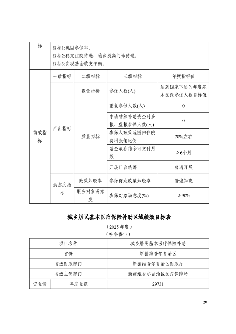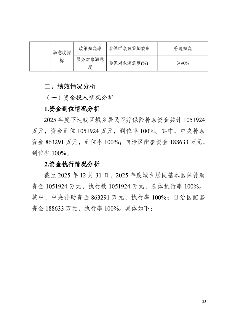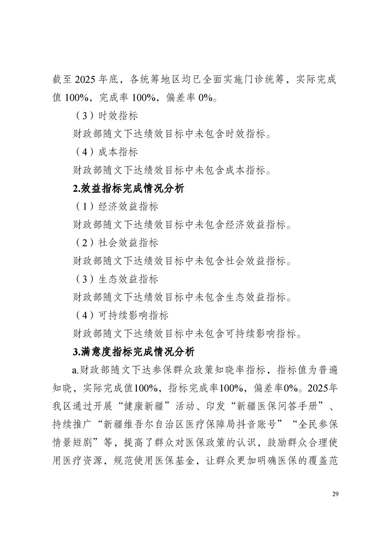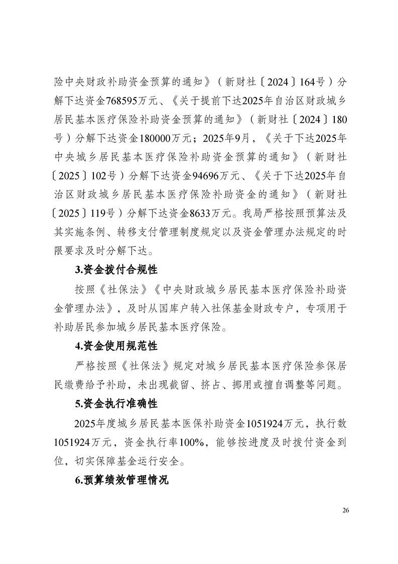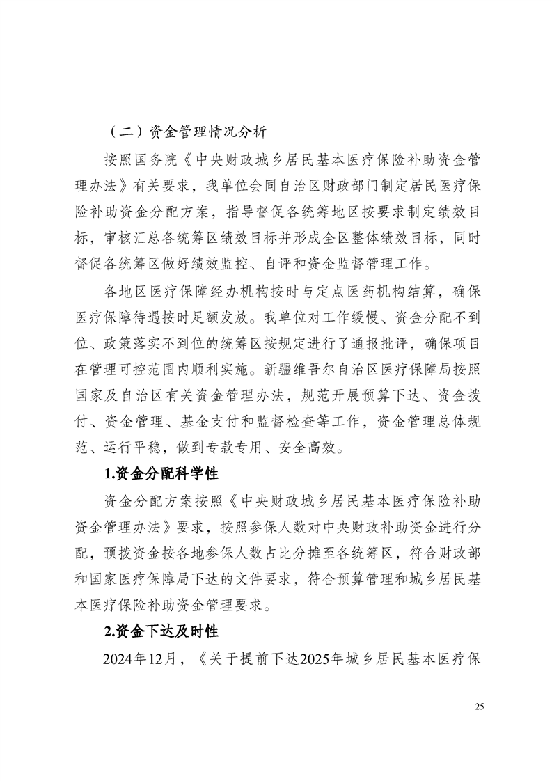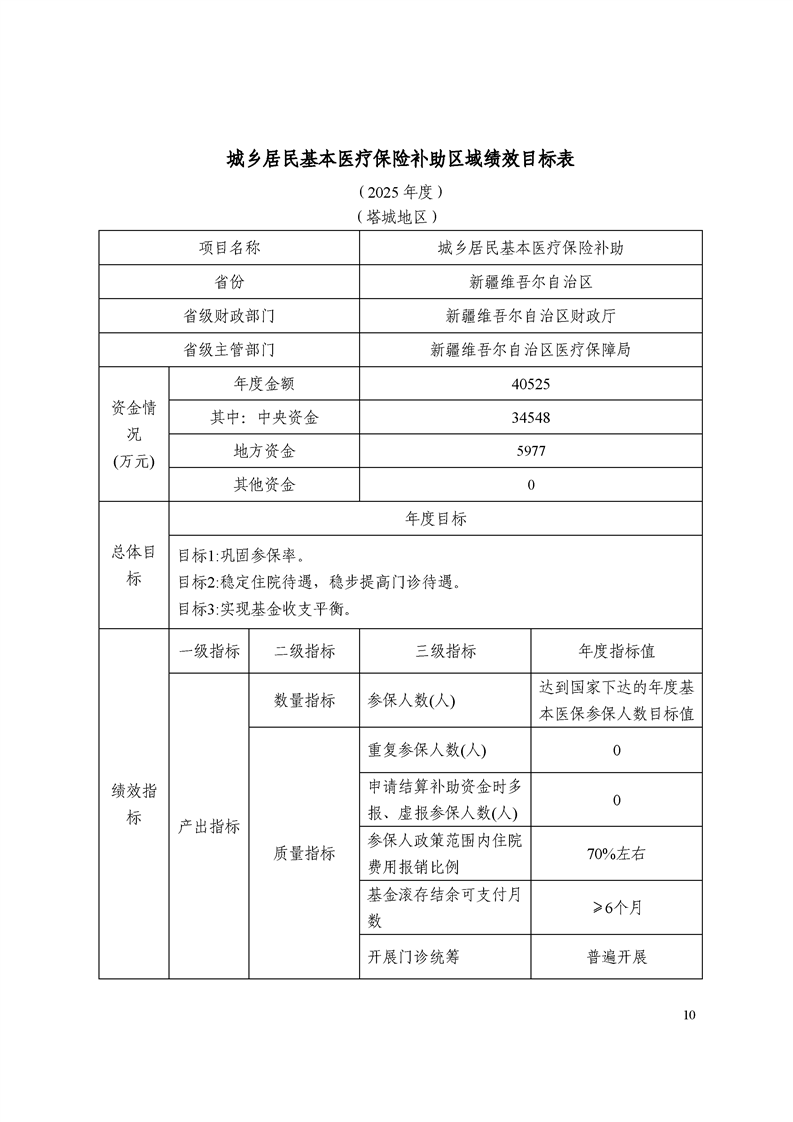 新疆维吾尔自治区城乡居民基本医保补助 转移支付资金2025年度绩效自评报告