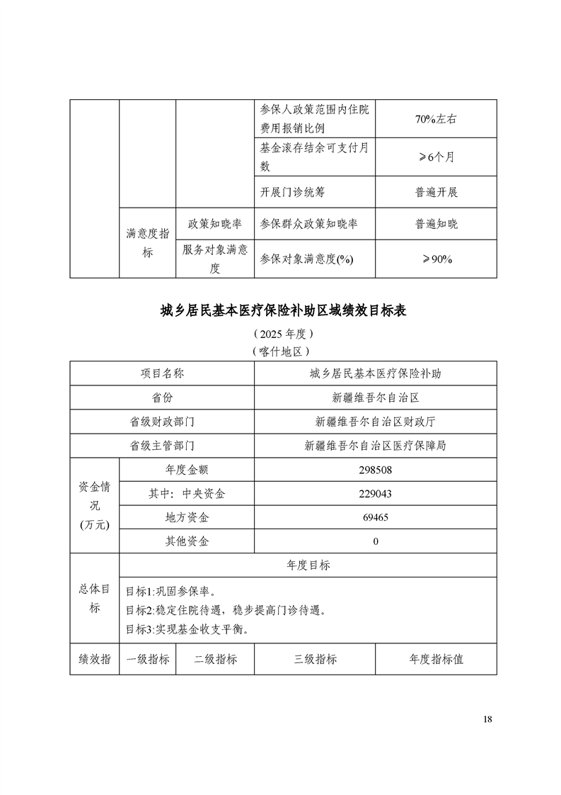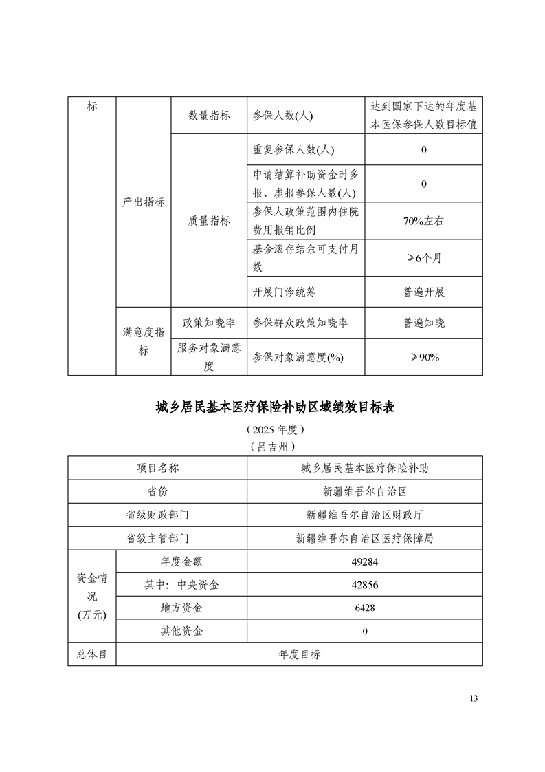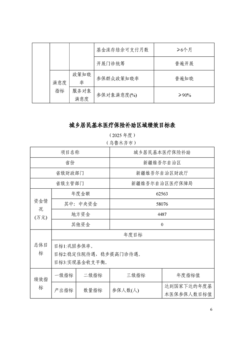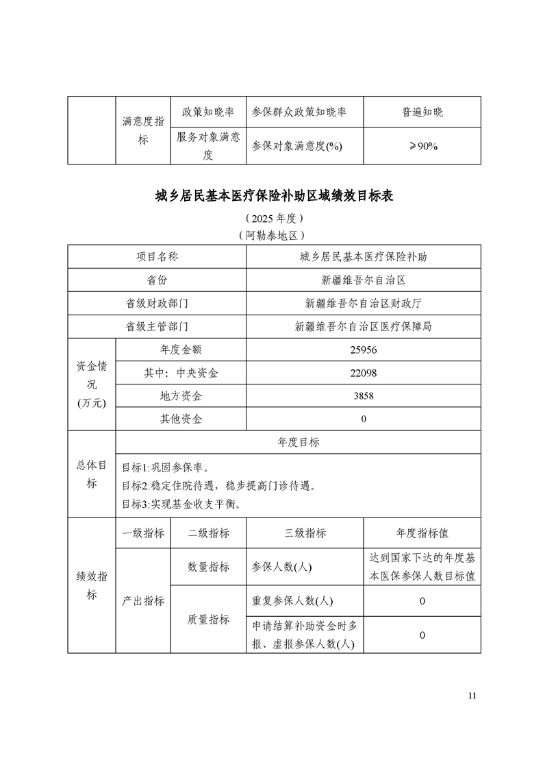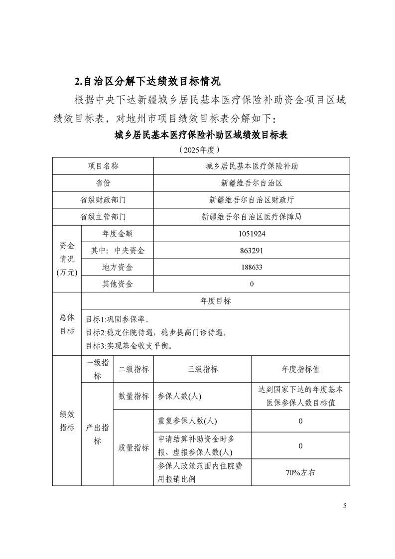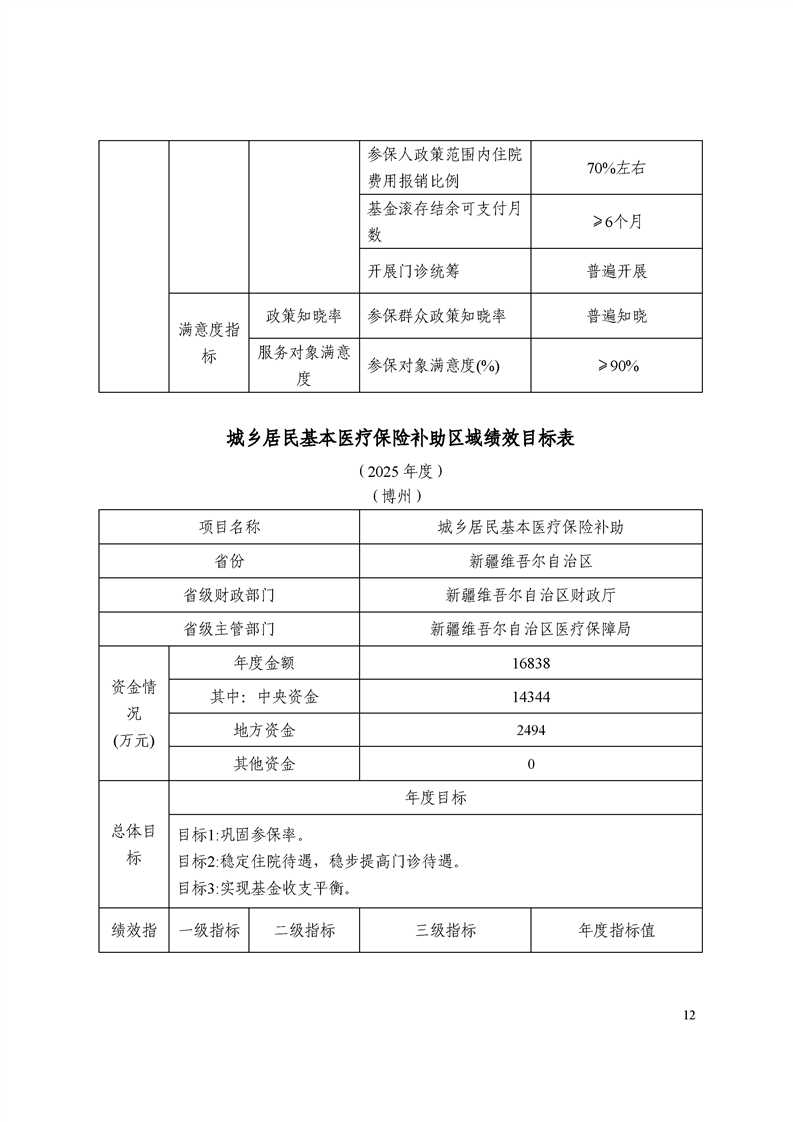 新疆维吾尔自治区城乡居民基本医保补助 转移支付资金2025年度绩效自评报告