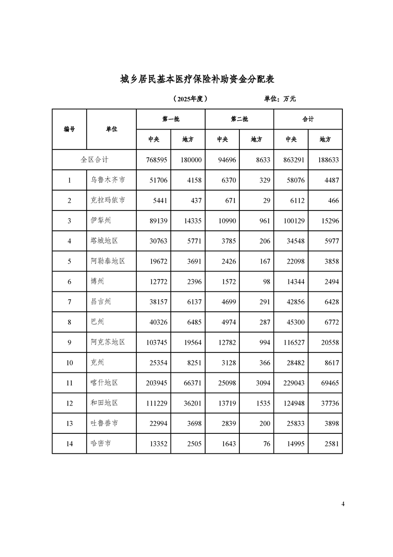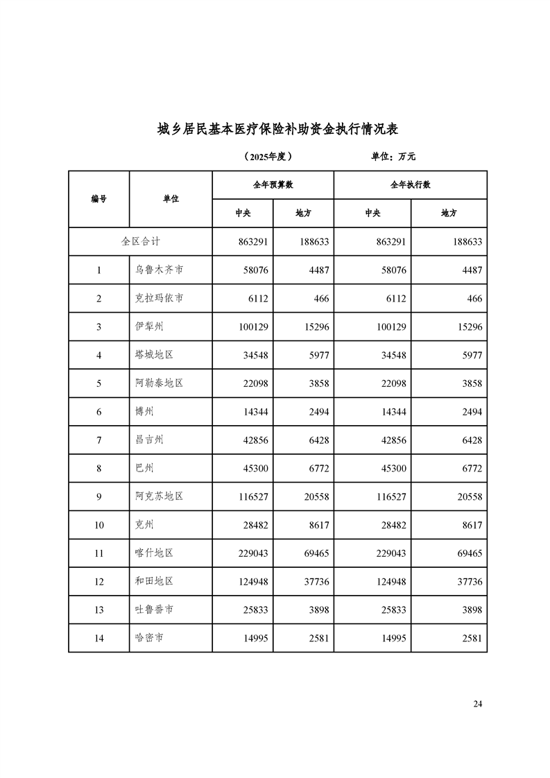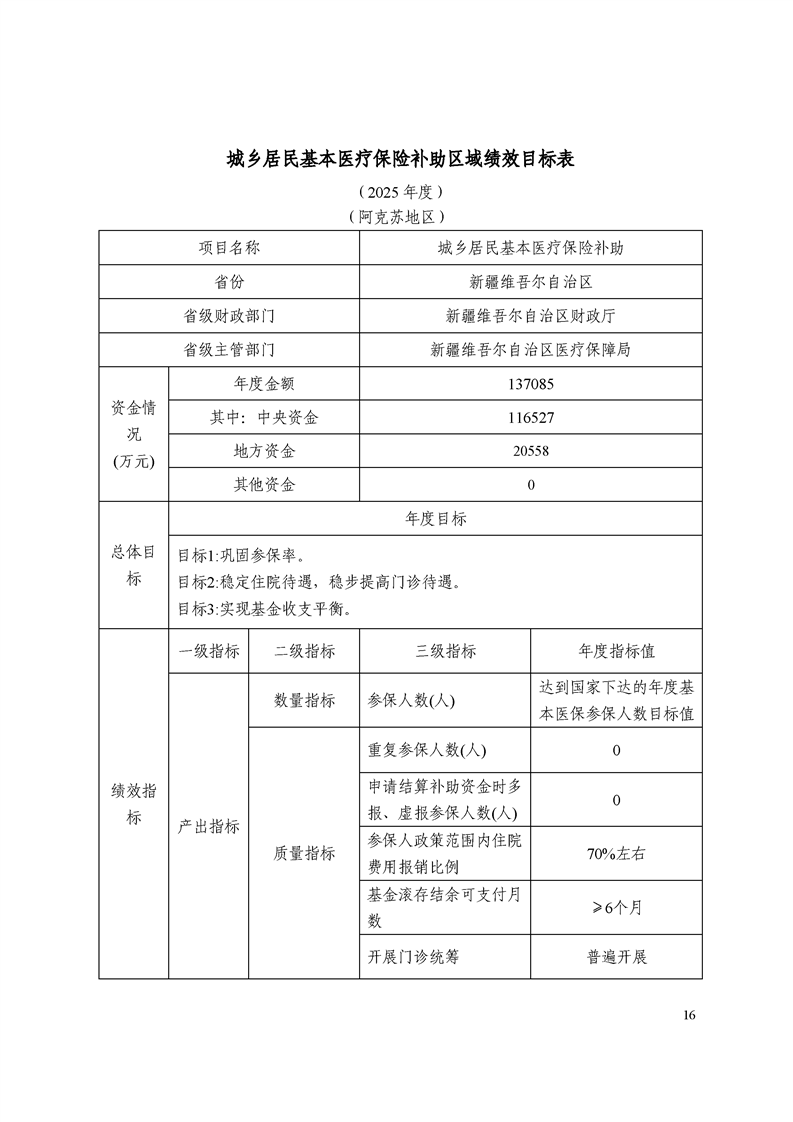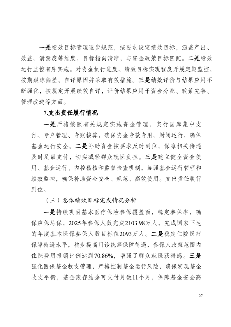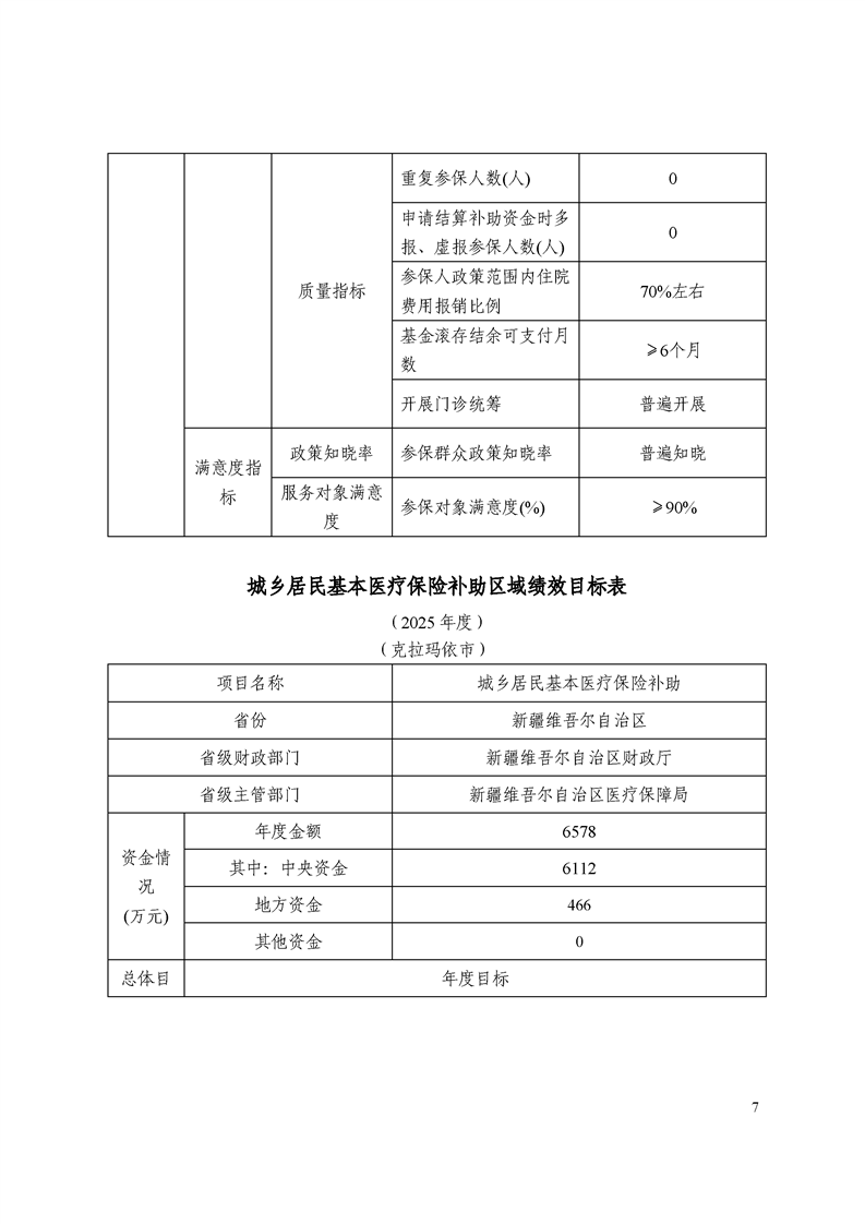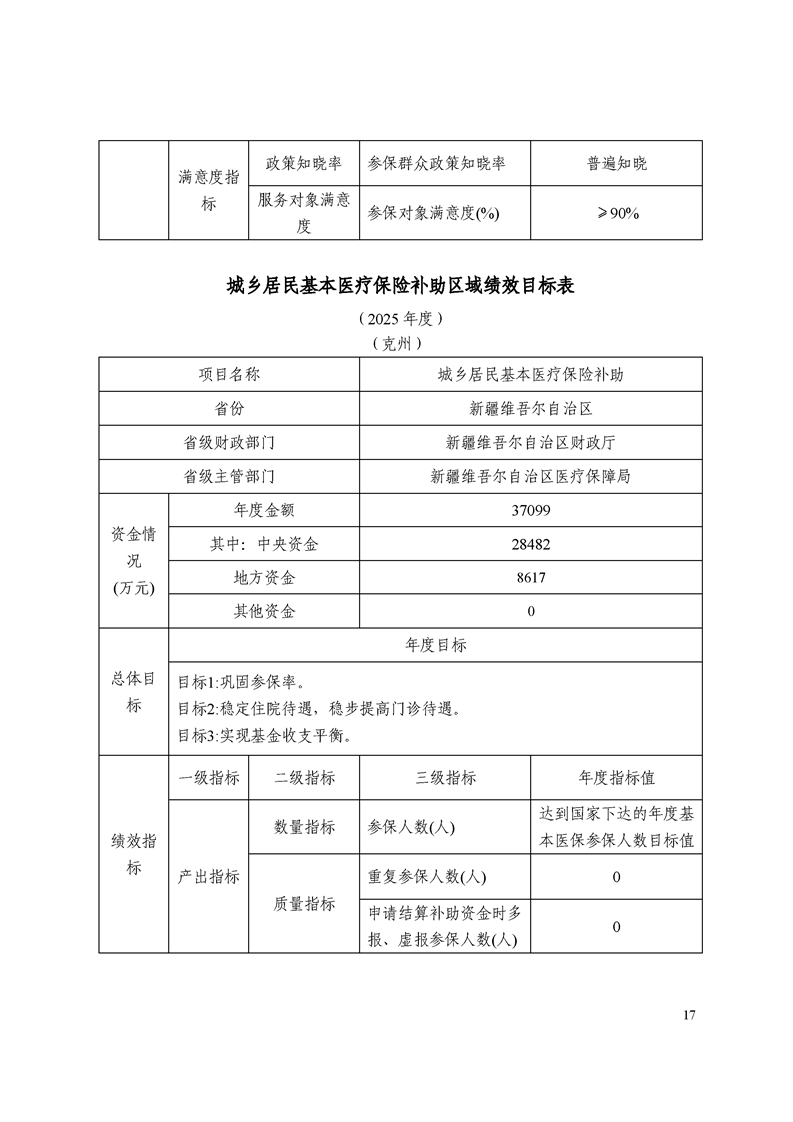 新疆维吾尔自治区城乡居民基本医保补助 转移支付资金2025年度绩效自评报告