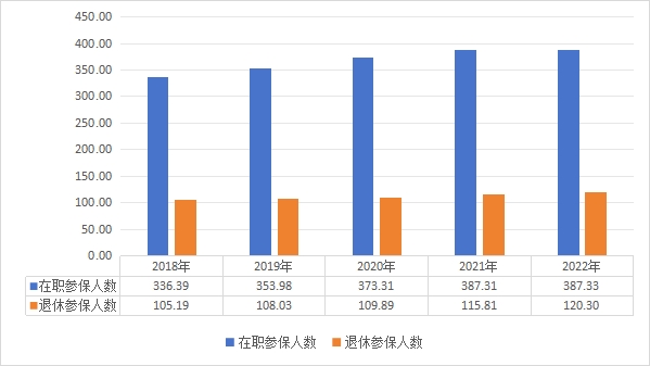 1.参保人数。截至2022年底,职工医保参保507.62万人,比上年增加4.49万人,增长0.89%。其中在职职工387.33万人,退休职工120.29万人。