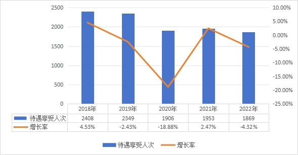 2018-2022年居民医保享受待遇人次(不含药店购药)