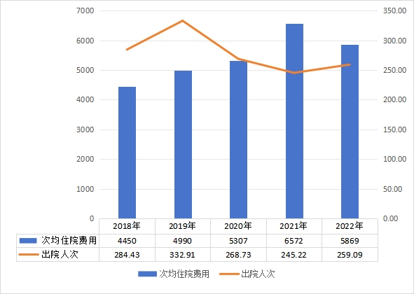 2022年居民医保次均住院费用5869元,其中三级、二级、一级及以下医疗机构(含未定级)的次均住院费用分别为12504元、5304元、1905元。居民医保参保人员次均住院床日8.7天,其中三级、二级、一级及以下医疗机构(含未定级)的次均住院床日分别为8.5天、9.3天、7.5天。