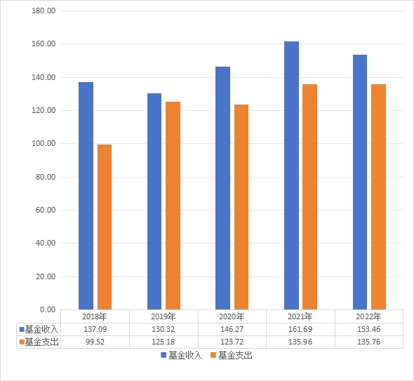 2.基金收支。2022年职工医保基金(含生育保险)收入332.31亿元,比上年降低1.61%;基金(含生育保险)支出237.12亿元,比上年降低0.82%。2022年职工医保统筹基金(含生育保险)收入226.22亿元,比上年增长13.14%;统筹基金(含生育保险)支出145.30亿元,比上年降低2.79%;统筹基金(含生育保险)当期结存80.92亿元,累计结存438.10亿元。