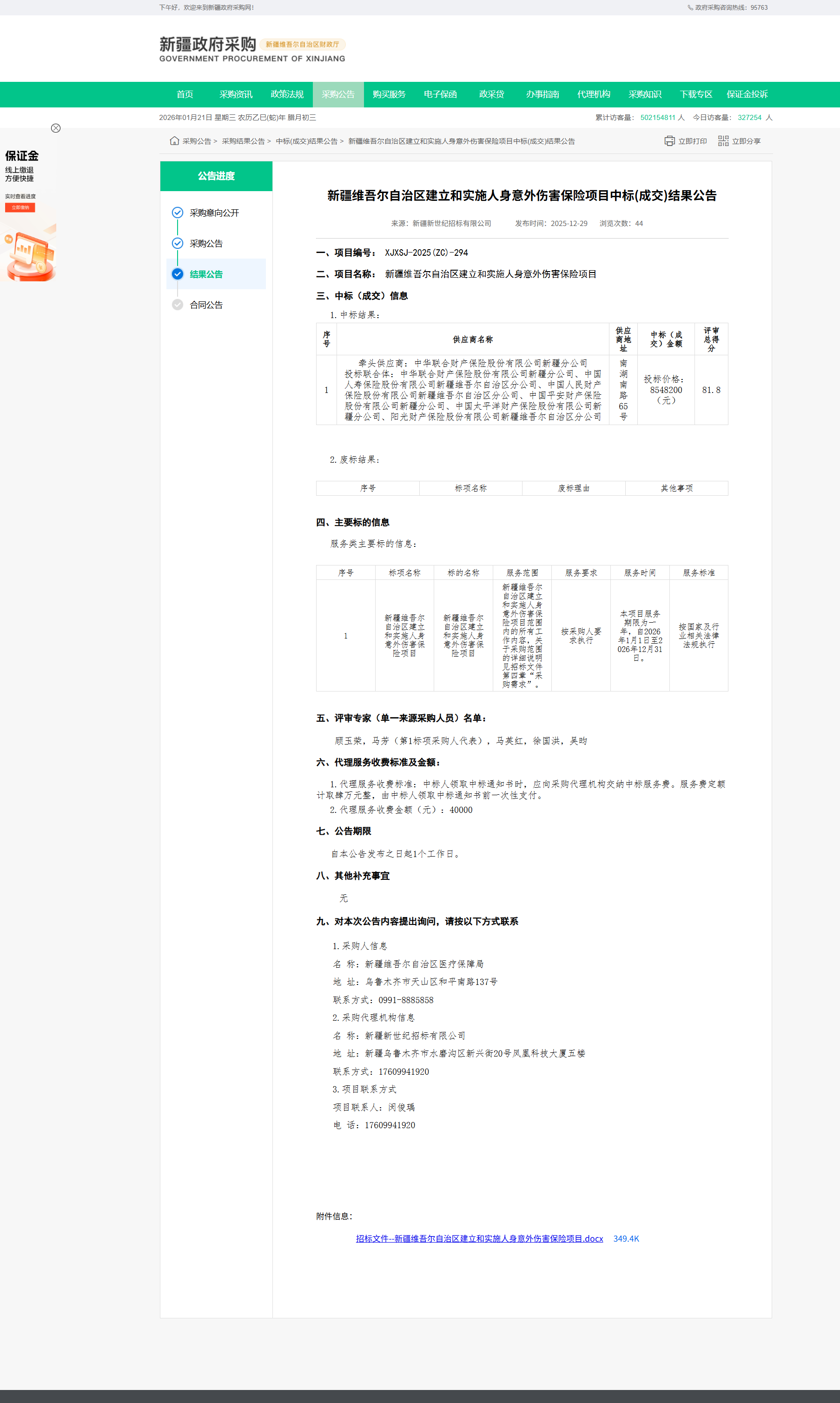 新疆维吾尔自治区建立和实施人身意外伤害保险项目