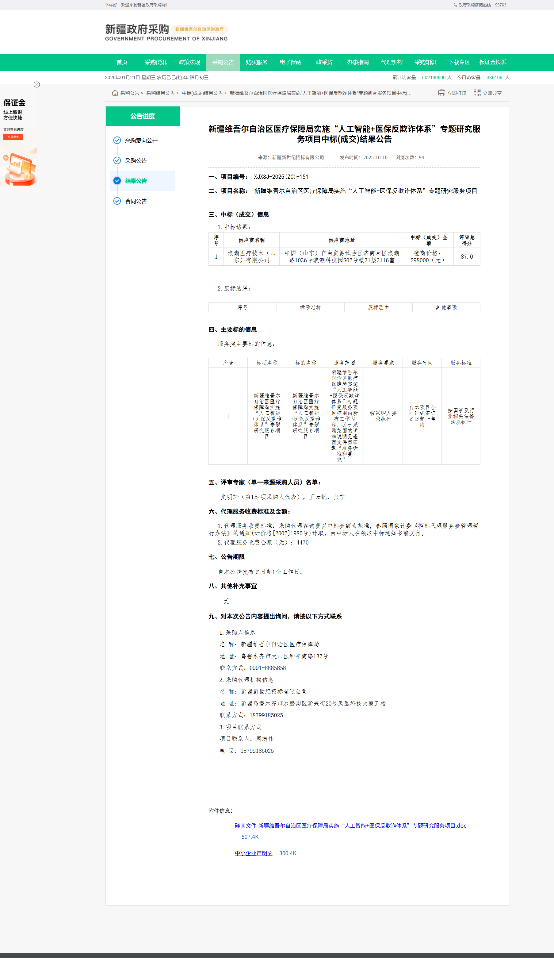 新疆维吾尔自治区医疗保障局实施“人工智能+医保反欺诈体系”专题研究服务项目