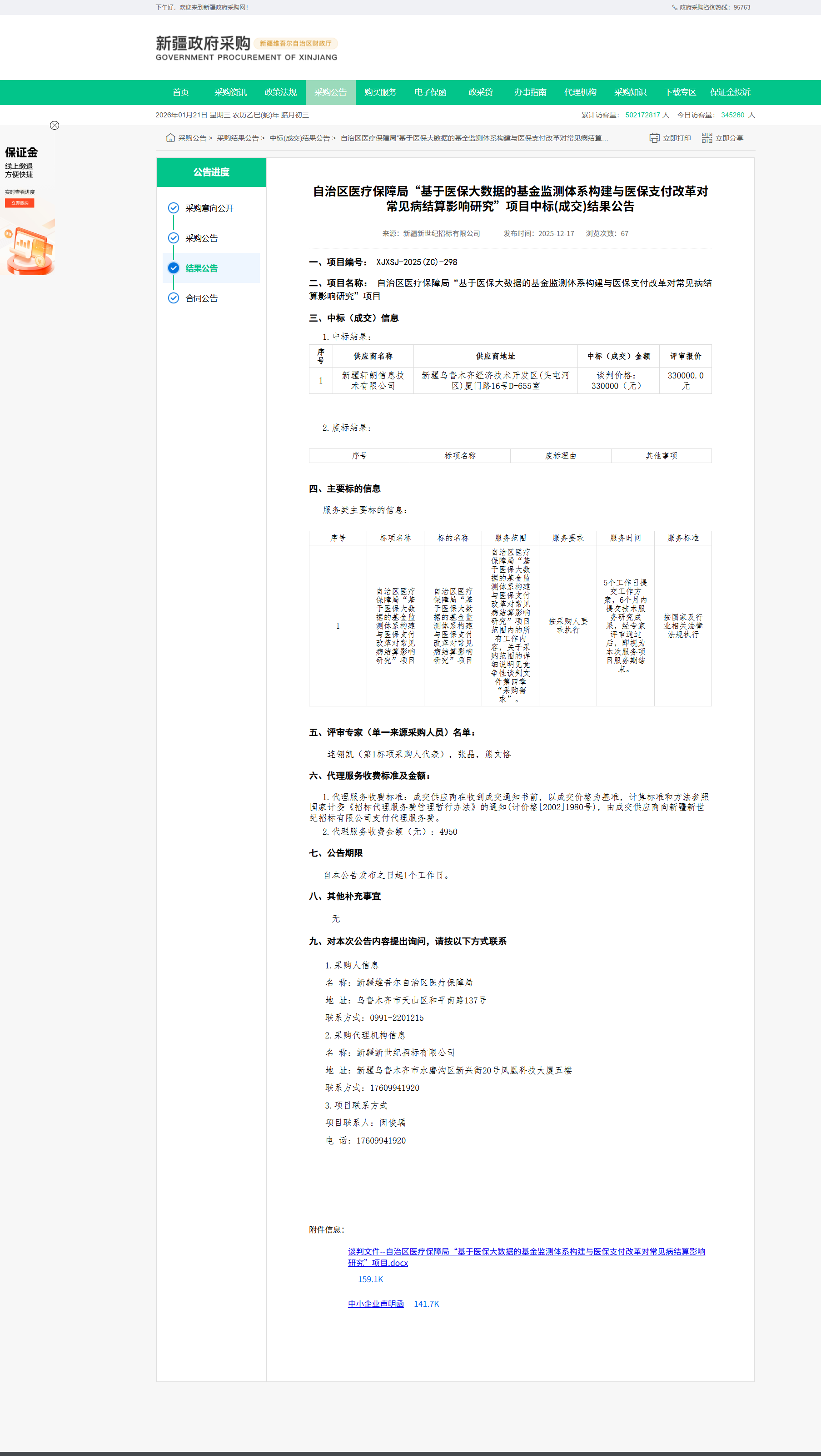 自治区医疗保障局“基于医保大数据的基金监测体系构建与医保支付改革对常见病结算影响研究”项目