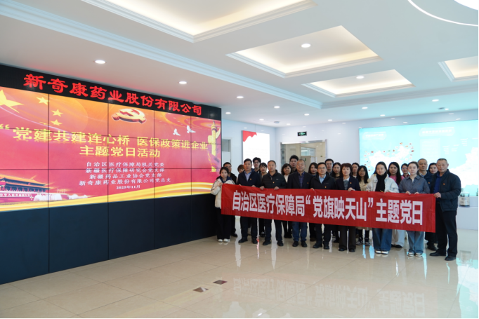 为深入贯彻落实新时代党的建设总要求,深入学习贯彻党的二十届四中全会精神,充分发挥党建引领作用,推动党建与业务深度融合,促进医保政策精准服务企业。11月27日下午,自治区医疗保障局机关各处室(中心)党支部、新疆医疗保障研究会党支部联合新疆药品工业协会党支部,在新奇康药业股份有限公司共同举办“党建共建连心桥医保政策进企业”主题党日活动。