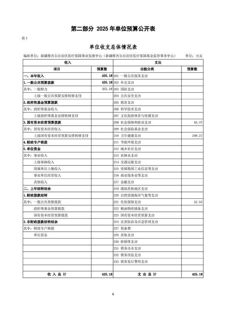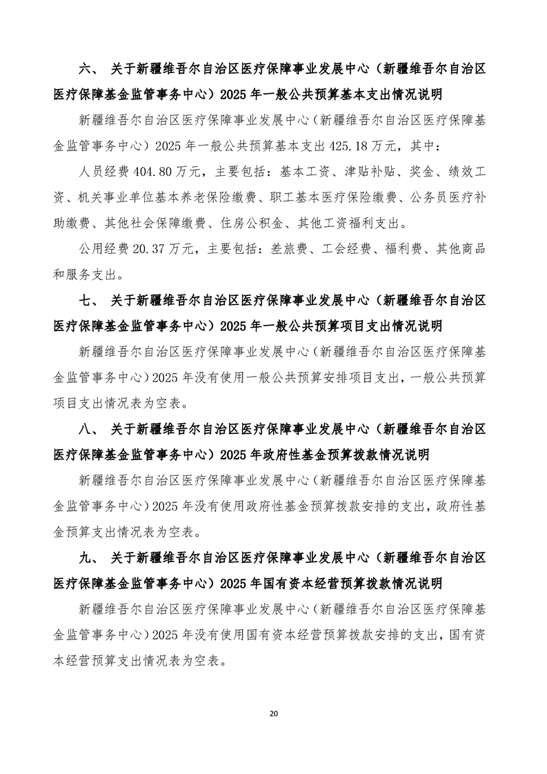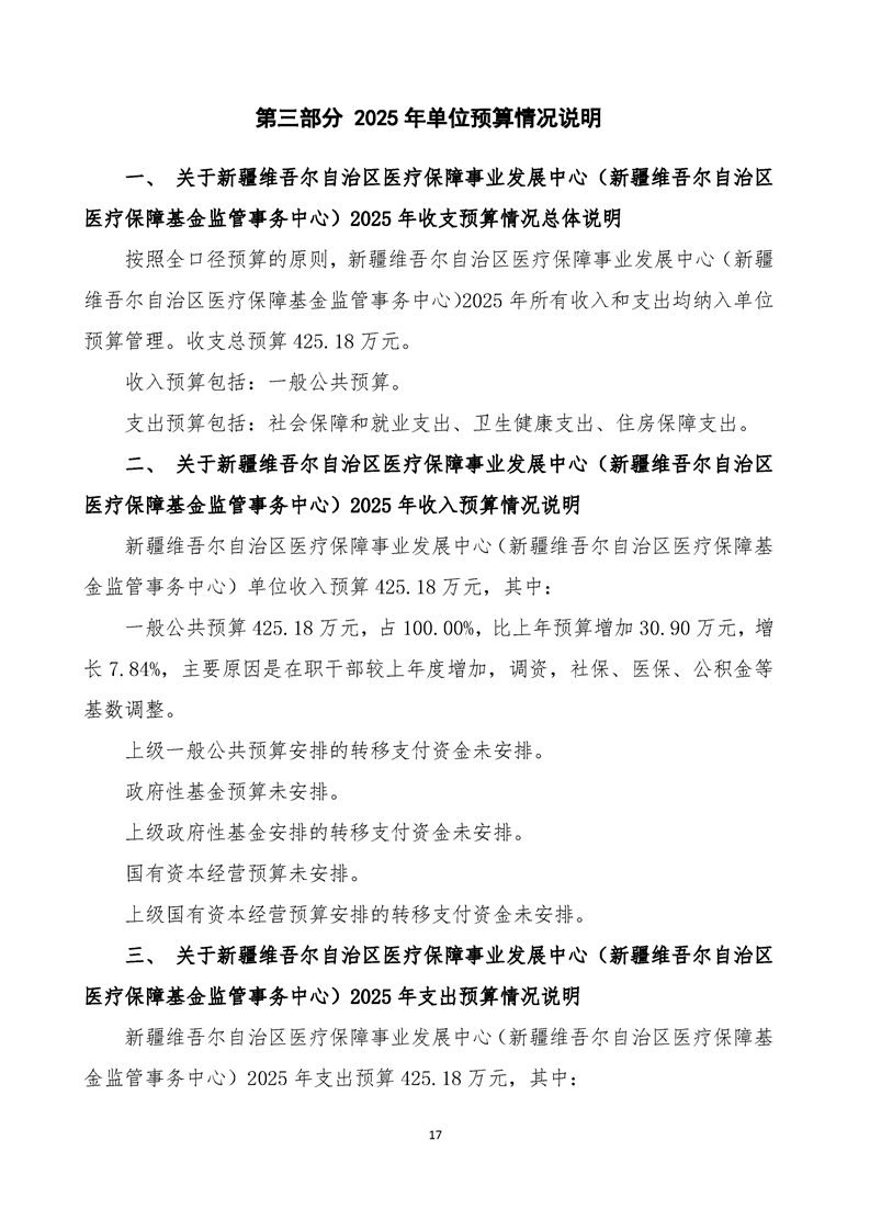 新疆维吾尔自治区医疗保障事业发展中心(新疆维 吾尔自治区医疗保障基金监管事务中心) 2025 年单位预算公开