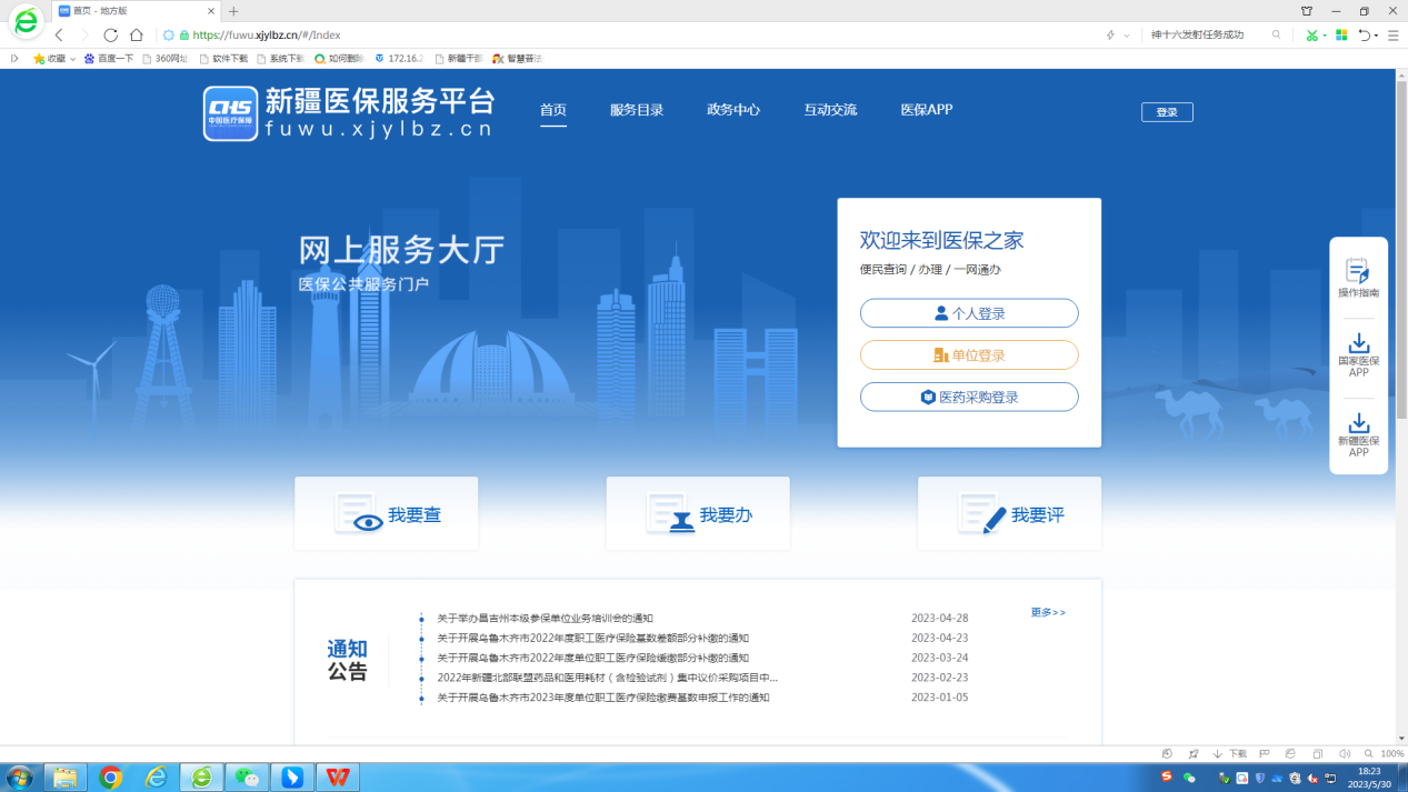 答:网厅进入方式1:PC端浏览器网址输入网址:https://fuwu.xjylbz.cn/或搜索“新疆医保服务平台”进入。